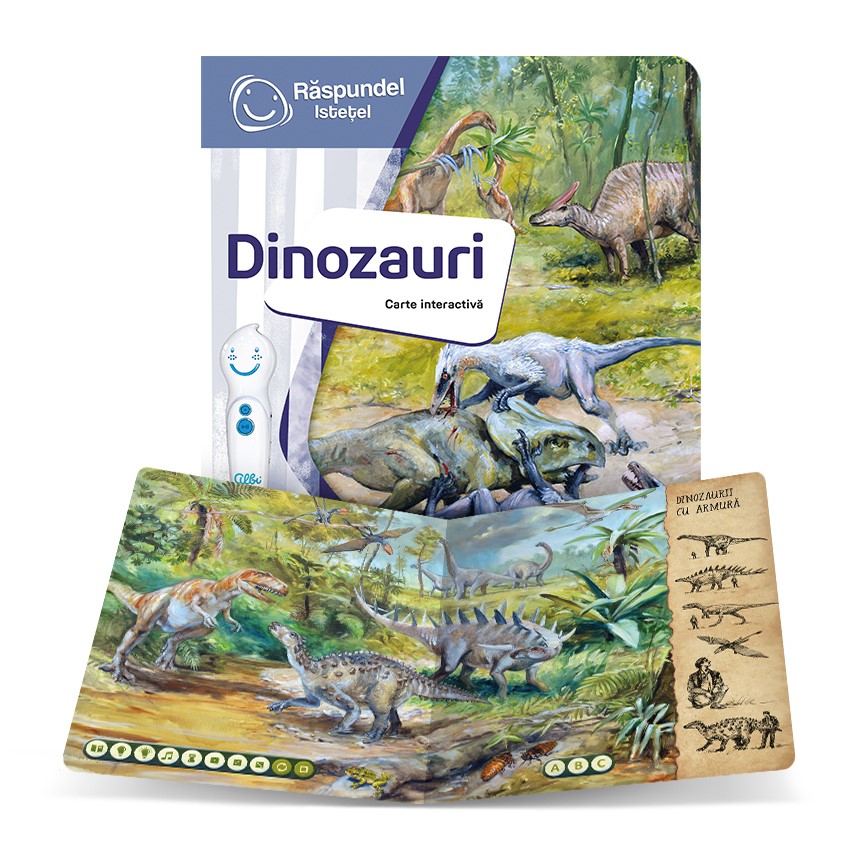 Descopera lumea fascinanta a dinozaurilor care au trait pe Pamant cu milioane de ani in urma. In aceasta carte plina de desene fermecatoare vei gasi informatii despre vremurile preistorice. Vei invata despre evolutia dinozaurilor si a altor creaturi preistorice, de la aparitia pana la disparitia lor, cauzata de coliziunea unui asteroid urias cu planeta Pamant. Aceasta carte se bazeaza pe ultimele descoperiri ale stiintei si ii va fascina atat pe tinerii exploratori cat si pe aventurierii adulti. Aceasta carte functioneaza doar impreuna cu creionul Albi, pe care il puteti achizitiona separat sau il gasiti in pachetele cu creion si carte. Un creion functioneaza cu toate produsele Raspundel Istetel. Varsta recomandata: 6+ ani