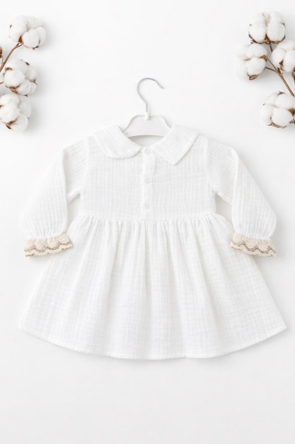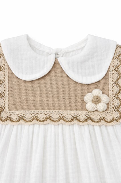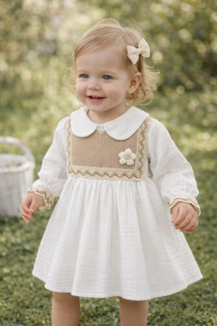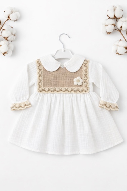 Acest produs Rochita bebe fetita alba eleganta cu guler clasic dantela si design vintage premium este model TRPB0214