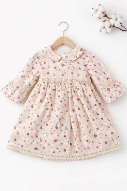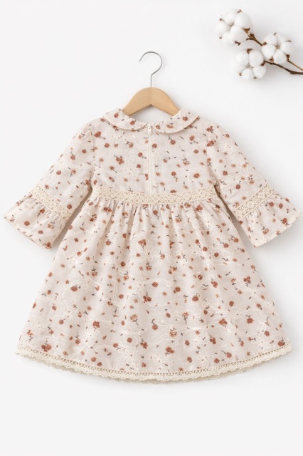 Acest produs Rochita bebe fetita eleganta cu imprimeu floral guler rotund si dantela delicata este model TRPB0212