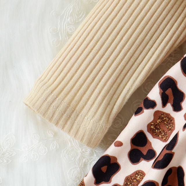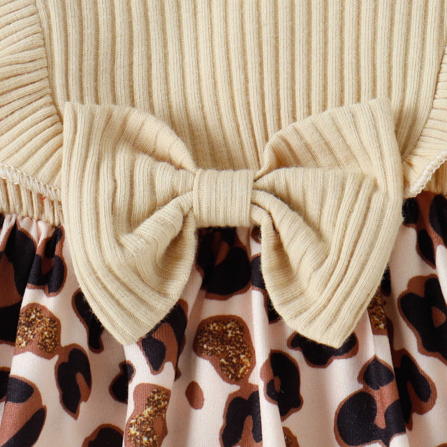 Rochita body crem, cu manecute lungi, cu fustita cu imprimeu animal print aplicata. Se inchide cu capse intre picioruse si este prevazuta cu o fundita aplicata in fata.