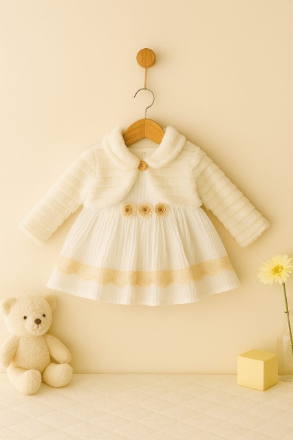 Acest produs Rochita eleganta bebelusi cu bolerou pufos ivoire si dantela – Tinuta speciala pentru fetite este model TRMB2157