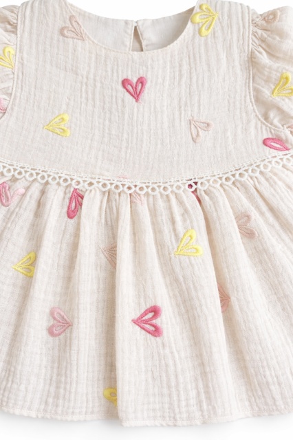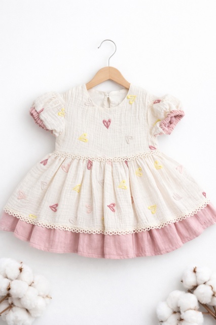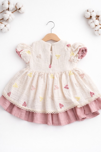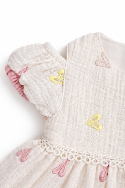 Acest produs Rochita fetita bumbac ivoire roz inimioare maneca scurta eleganta bebelusi este model TRPB0219