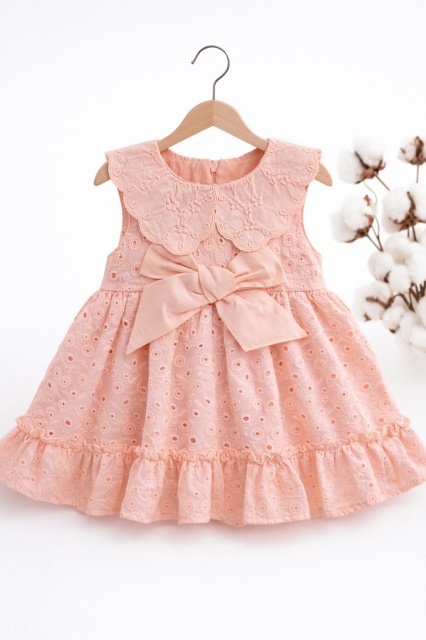 Acest produs Rochita fetita roz broderie eleganta cu fundita design premium bebelusi copii este model TRPB0220