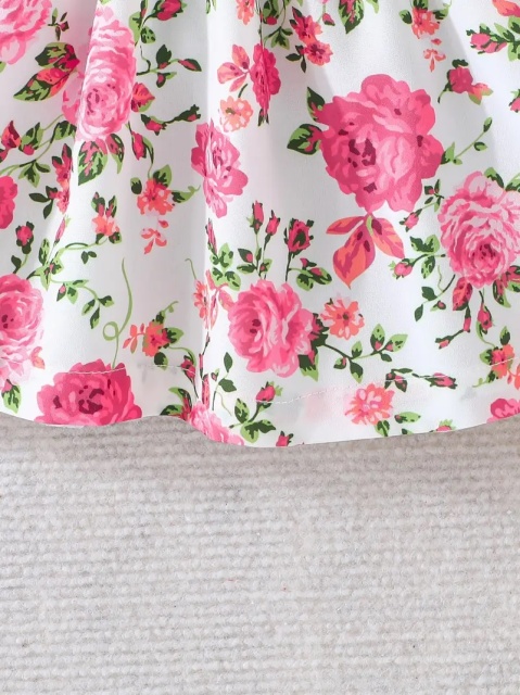 Acest produs Rochita roz cu imprimeu cu trandafirasi pe fond alb este model MDTU15-R1