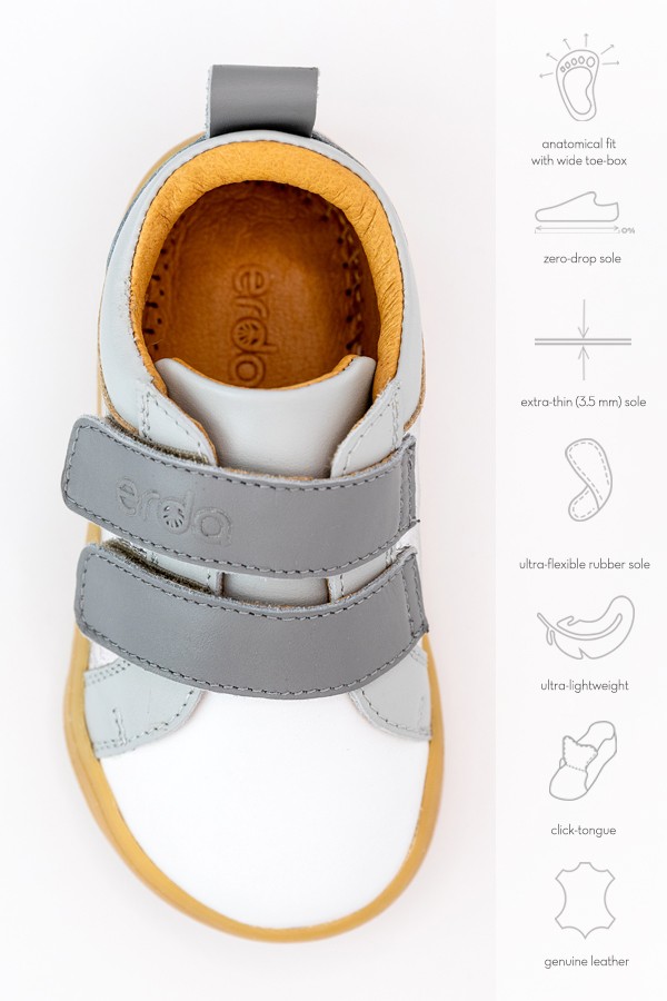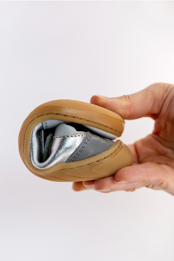 Incaltamintea barefoot ERDA a fost creata pentru a respecta anatomia, nevoile si bucuria miscarii libere. Sunt pantofiori care ofera protectie, fara sa limiteze. Sustin dezvoltarea naturala, fara constrangeri. Si, la fel ca toate produsele ISARA, imbina stiinta, designul si durabilitatea cu o viziune profund umana. Pantofiori barefoot, din piele naturalaCopiii invata mersul prin simturi: textura solului, greutatea corpului, echilibrul. Pantofiorii barefoot ERDA pastreaza senzatia mersului descult, dar adauga un strat de protectie – exact cat trebuie. Talpa este subtire, de 3,5 mm, complet flexibila si dreapta (zero drop), ceea ce permite o postura naturala, activarea corecta a muschilor si o miscare fireasca a gleznei.Forma care respecta anatomia.Varful lat al pantofului le ofera degetelor spatiu sa se miste si sa se alinieze corect – fara presiune, fara deformare. Nu contine intarituri rigide si nu forteaza piciorul intr-o forma artificiala.Materiale prietenoase cu pielea.Folosim piele naturala moale si flexibila, cu proprietati exceptionale de respirabilitate. Aceasta asigura un confort sporit chiar si pentru copiii care au pielea sensibila. Captuseala interioara este de asemenea 100% din piele, fiind fina si placuta la atingere. Joc si personalitate. Fie ca cel mic viseaza la culori vii si indraznete, iubeste pastelurile delicate sau prefera tonurile clasice, noua colectie Erda Barefoot are o culoare pentru fiecare dorinta si fiecare stare de spirit.De la verdele natural si rozul stralucitor, pana la movurile calde si griurile rafinate, fiecare pereche este creata pentru a lasa personalitatea sa straluceasca, oferind in acelasi timp confort si libertate deplina de miscare. Usor de purtat: click-tongue integrat Sunt incredibil de usori, nu aluneca si se incalta rapid – perfecti pentru gradinita, scoala, acasa, joaca si plimbari.Sistemul inovator click-tongue cu limba fixata prin click mentine limba pantofului ridicata, prevenind alunecarea in interior. Astfel, copiii isi pot incalta usor pantofii, avand mai mult spatiu si confort. Pentru parinti care aleg constient. ERDA shoes e o promisiune: ca fiecare pas facut va sustine dezvoltarea naturala, joaca autentica si conexiunea cu lumea si pamantul, oferind copiilor libertatea de a simti suprafetele, de a-si activa simturile si instinctele, asa cum o face mersul descult.Detalii tehnice:• Varf lat pentru degete libere• Talpa foarte subtire (3,5 mm), din cauciuc extrem de flexibil, antiderapant• Zero drop (fara diferenta intre calcai si varf)• Click tongue inovator pentru incaltare usoara• Design fara intarituri rigide• Greutate redusa• Piele naturala, moale si rezistenta• Usor de intretinut• Disponibili in mai multe culori neutre sau jucause