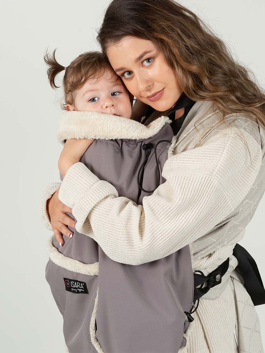 Disponibil in marime universala, ONE SIZE DESIGN, sistemul de ajustare SMART al protectiilor de iarna Clever Cover ISARA se ataseaza etans pe orice tip de sistem de purtare (SSC, sling cu inele, wrap etc.) si orice tip de purtare ( in fata, pe sold sau in spate), adaptandu-se la forma corpului purtatorului si a copilasului.