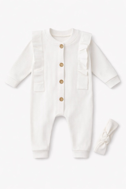Acest produs Salopeta bebe bumbac rib alba cu nasturi si bentita set elegant este model TRAM0038