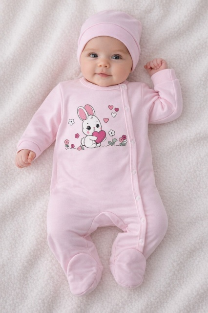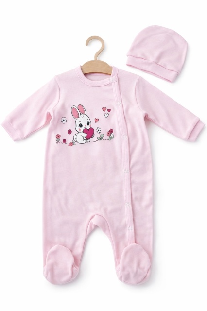 Acest produs Salopeta bebe fete roz deschis iepuras inimioara bumbac cu caciula este model TRAM2202-7