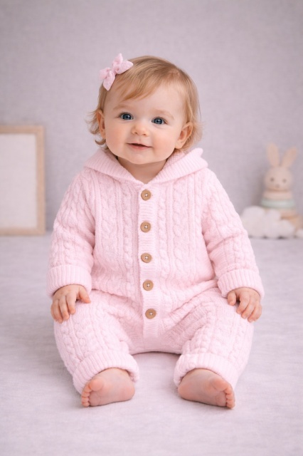 Acest produs Salopeta bebelusi tricotata roz cu gluga – calduroasa si moale este model TRAM0003