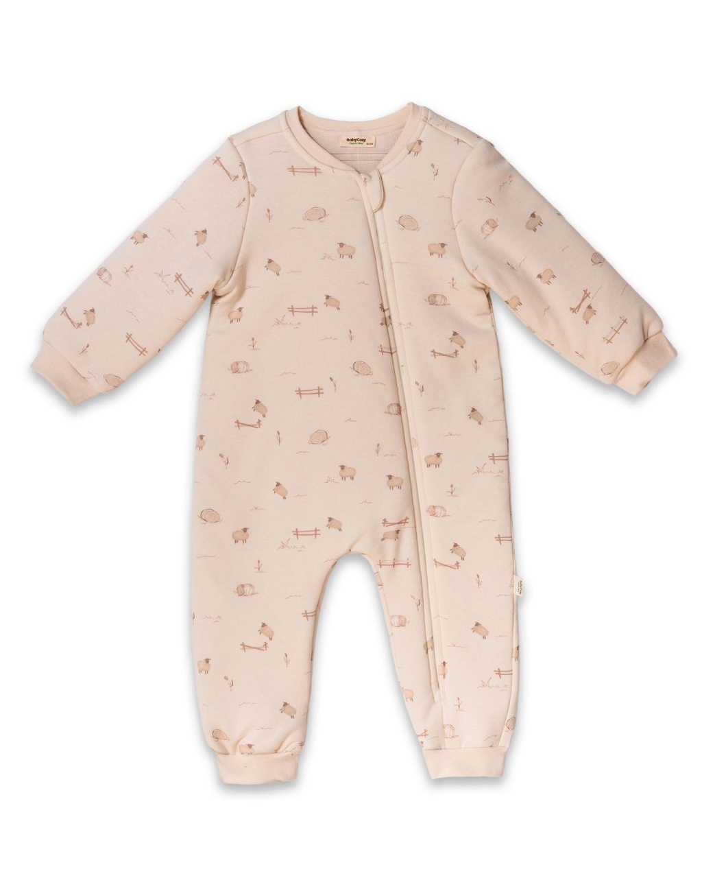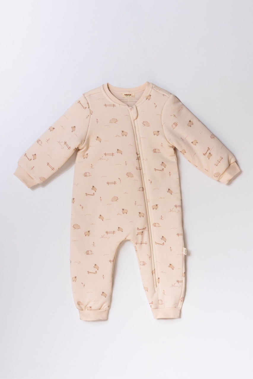 Designul este gândit cu grijă pentru părinți ocupați – fermoarul complet, de sus până jos, permite îmbrăcarea rapidă și schimbarea ușoară a bebelușului, fără disconfort. Imprimeurile delicate cu oițe și tonurile neutre adaugă un aer cald și natural, potrivit atât pentru fetițe, cât și pentru băieței.