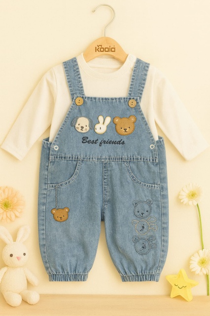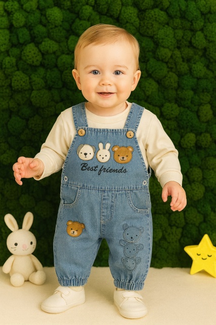 Acest produs Salopeta din denim pentru bebelusi Best Friends – Material moale, broderii simpatice, confort pentru joaca este model TRMB943