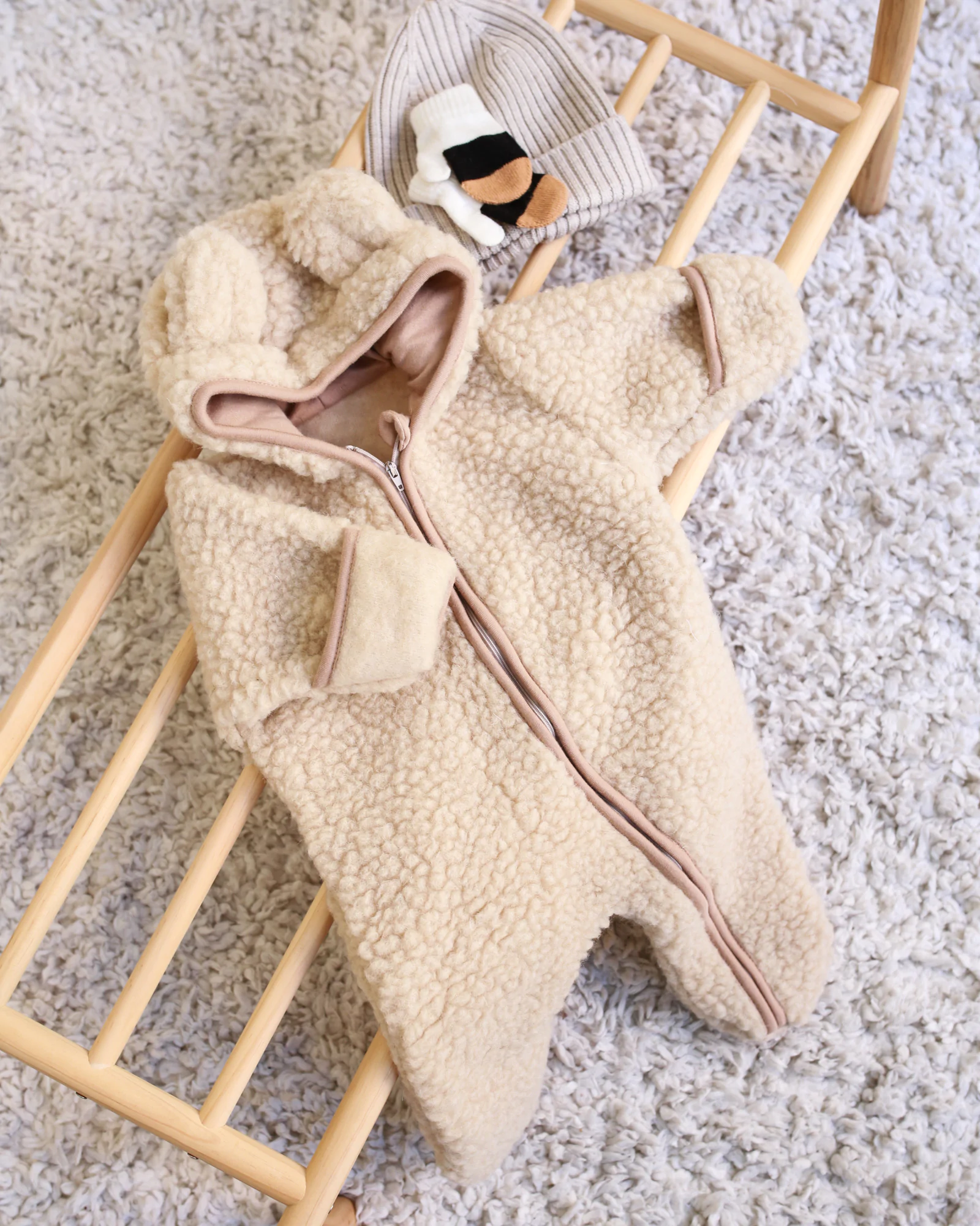 Salopeta din lana merinos pentru bebelusi , Bej Caldura naturala , žUrsulet de plus, Descopera confortul suprem pentru zilele reci cu salopeta groasa din lana merinos 100% naturala , in varianta , žUrsulet de plus, , o tesatura moale, densa (380 g) si respirabila, creata special pentru pielea sensibila a bebelusilor. Ideala pentru plimbarile de toamna si iarna, aceasta salopeta combina caldura naturala a lanii merinos cu designul practic de tip overalls , pentru libertate de miscare si protectie completa. Proprietati naturale, confort de neegalat Regleaza temperatura corpului: mentine bebelusul cald afara si previne supraincalzirea in interior. Absoarbe umezeala: pielea ramane uscata si placuta la atingere. Respirabila si moale: aerul circula natural, oferind confort continuu. Antialergenica: nu acumuleaza praf sau acarieni, ideala pentru bebelusi sensibili. Favorizeaza somnul linistit: textura placuta ajuta la relaxarea sistemului nervos. Detalii practice gandite pentru parinti Clapete pliabile pentru maini si picioare , nu mai ai nevoie de manusi sau botosei suplimentari. Croiala supradimensionata , salopeta creste odata cu copilul si se potriveste mai mult timp. Lana merinos , žUrsulet de plus, 380 g , groasa, moale si rezistenta, arata impecabil chiar si dupa multe purtari. Lucrata manual in Polonia , cusaturi fine, finisaje impecabile, calitate premium. Marimi disponibile 0, 6 luni: latime 30 cm, lungime 58 cm (+ - 2 cm) , cu protectii integrate pentru picioare 6, 18 luni: latime 32 cm, lungime 70 cm (+ - 2 cm) 18, 36 luni: latime 34 cm, lungime 79 cm (+ - 2 cm) Instructiuni de ingrijire Lana merinos se curata usor , de cele mai multe ori este suficienta aerisirea in aer proaspat . Daca e nevoie de spalare: Spala manual sau pe programul special pentru lana , in apa rece. Foloseste doar detergent pentru lana . Nu folosi balsam. Spalarea la masina se face pe propria raspundere. De ce o aleg parintii care iubesc naturaletea 100% lana merinos naturala (380 g m ²) Termoreglatoare si respirabila Moale, antialergenica si sigura Design practic cu clapete pentru maini si picioare Marime generoasa , creste odata cu copilul Fabricata manual in Polonia Caldura naturala, plimbari fericite Salopeta Merino Wool Overalls , Cream nu este doar o haina de iarna , este o imbratisare moale de lana pura , care protejeaza, incalzeste si ofera confort bebelusului tau in fiecare clipa. Alege naturaletea care respira odata cu el.