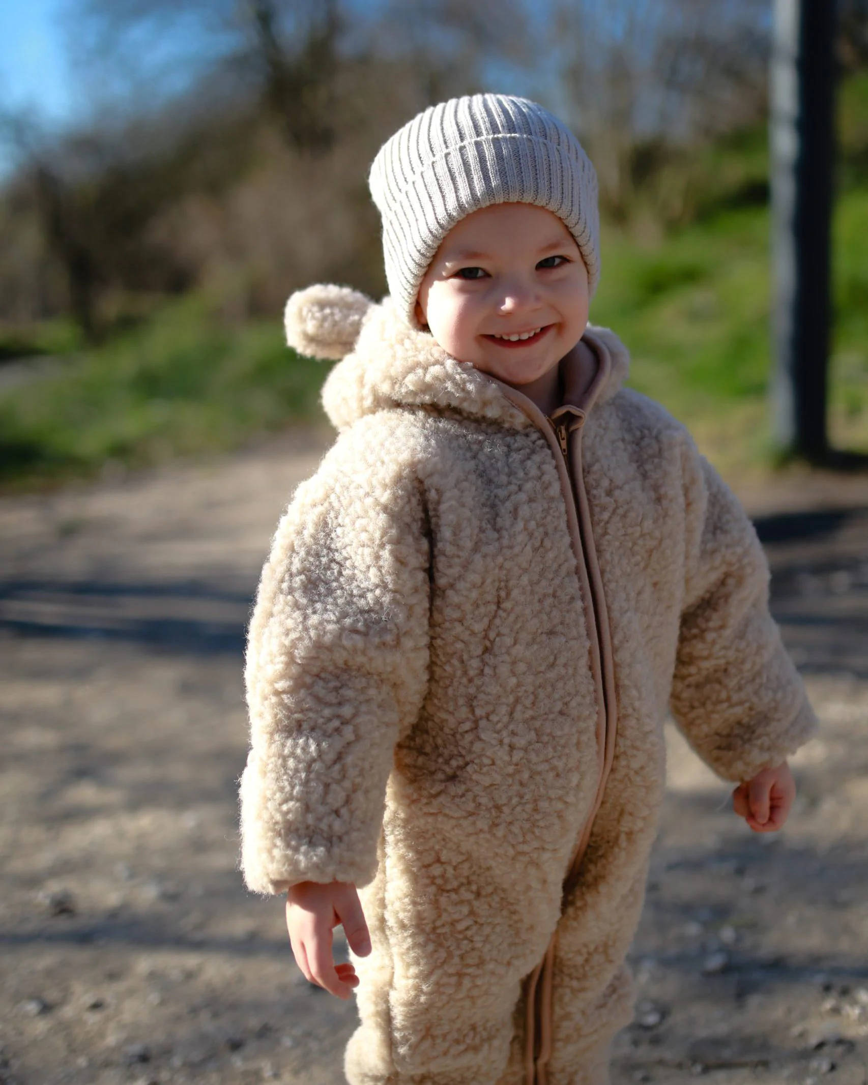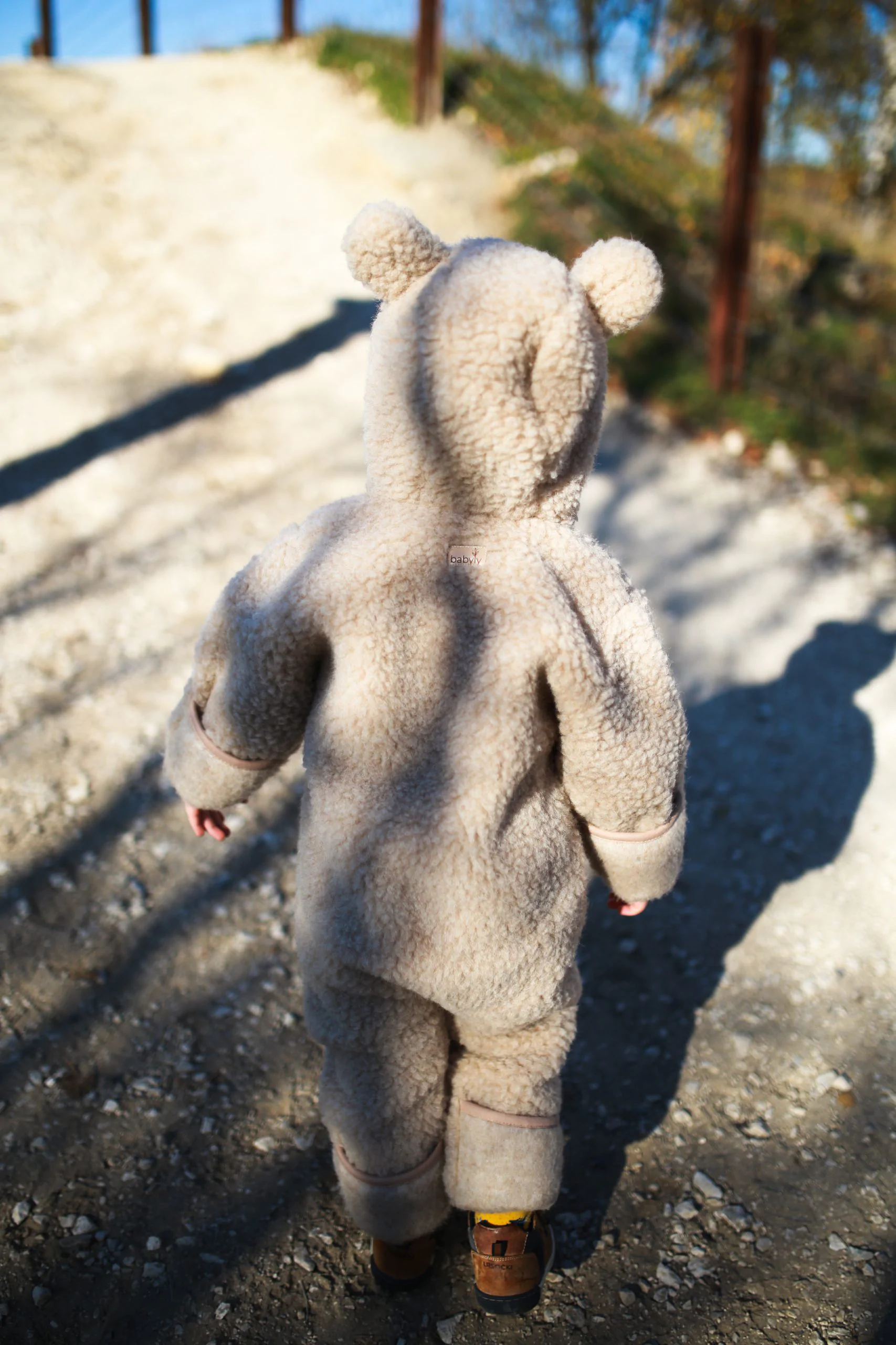 Salopeta din lana merinos pentru bebelusi , Bej Caldura naturala , žUrsulet de plus, Descopera confortul suprem pentru zilele reci cu salopeta groasa din lana merinos 100% naturala , in varianta , žUrsulet de plus, , o tesatura moale, densa (380 g) si respirabila, creata special pentru pielea sensibila a bebelusilor. Ideala pentru plimbarile de toamna si iarna, aceasta salopeta combina caldura naturala a lanii merinos cu designul practic de tip overalls , pentru libertate de miscare si protectie completa. Proprietati naturale, confort de neegalat Regleaza temperatura corpului: mentine bebelusul cald afara si previne supraincalzirea in interior. Absoarbe umezeala: pielea ramane uscata si placuta la atingere. Respirabila si moale: aerul circula natural, oferind confort continuu. Antialergenica: nu acumuleaza praf sau acarieni, ideala pentru bebelusi sensibili. Favorizeaza somnul linistit: textura placuta ajuta la relaxarea sistemului nervos. Detalii practice gandite pentru parinti Clapete pliabile pentru maini si picioare , nu mai ai nevoie de manusi sau botosei suplimentari. Croiala supradimensionata , salopeta creste odata cu copilul si se potriveste mai mult timp. Lana merinos , žUrsulet de plus, 380 g , groasa, moale si rezistenta, arata impecabil chiar si dupa multe purtari. Lucrata manual in Polonia , cusaturi fine, finisaje impecabile, calitate premium. Marimi disponibile 0, 6 luni: latime 30 cm, lungime 58 cm (+ - 2 cm) , cu protectii integrate pentru picioare 6, 18 luni: latime 32 cm, lungime 70 cm (+ - 2 cm) 18, 36 luni: latime 34 cm, lungime 79 cm (+ - 2 cm) Instructiuni de ingrijire Lana merinos se curata usor , de cele mai multe ori este suficienta aerisirea in aer proaspat . Daca e nevoie de spalare: Spala manual sau pe programul special pentru lana , in apa rece. Foloseste doar detergent pentru lana . Nu folosi balsam. Spalarea la masina se face pe propria raspundere. De ce o aleg parintii care iubesc naturaletea 100% lana merinos naturala (380 g m ²) Termoreglatoare si respirabila Moale, antialergenica si sigura Design practic cu clapete pentru maini si picioare Marime generoasa , creste odata cu copilul Fabricata manual in Polonia Caldura naturala, plimbari fericite Salopeta Merino Wool Overalls , Cream nu este doar o haina de iarna , este o imbratisare moale de lana pura , care protejeaza, incalzeste si ofera confort bebelusului tau in fiecare clipa. Alege naturaletea care respira odata cu el.
