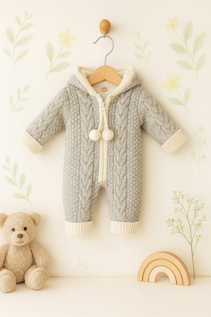 Acest produs Salopeta gri tricotata groasa cu gluga pentru bebelusi – model iarna este model TRMD4108-1
