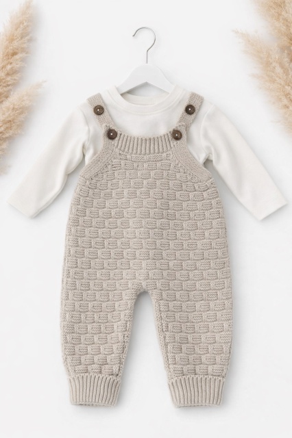 Acest produs Salopeta tricotata bebe bej cu bluza set elegant premium este model TRAM2202-2