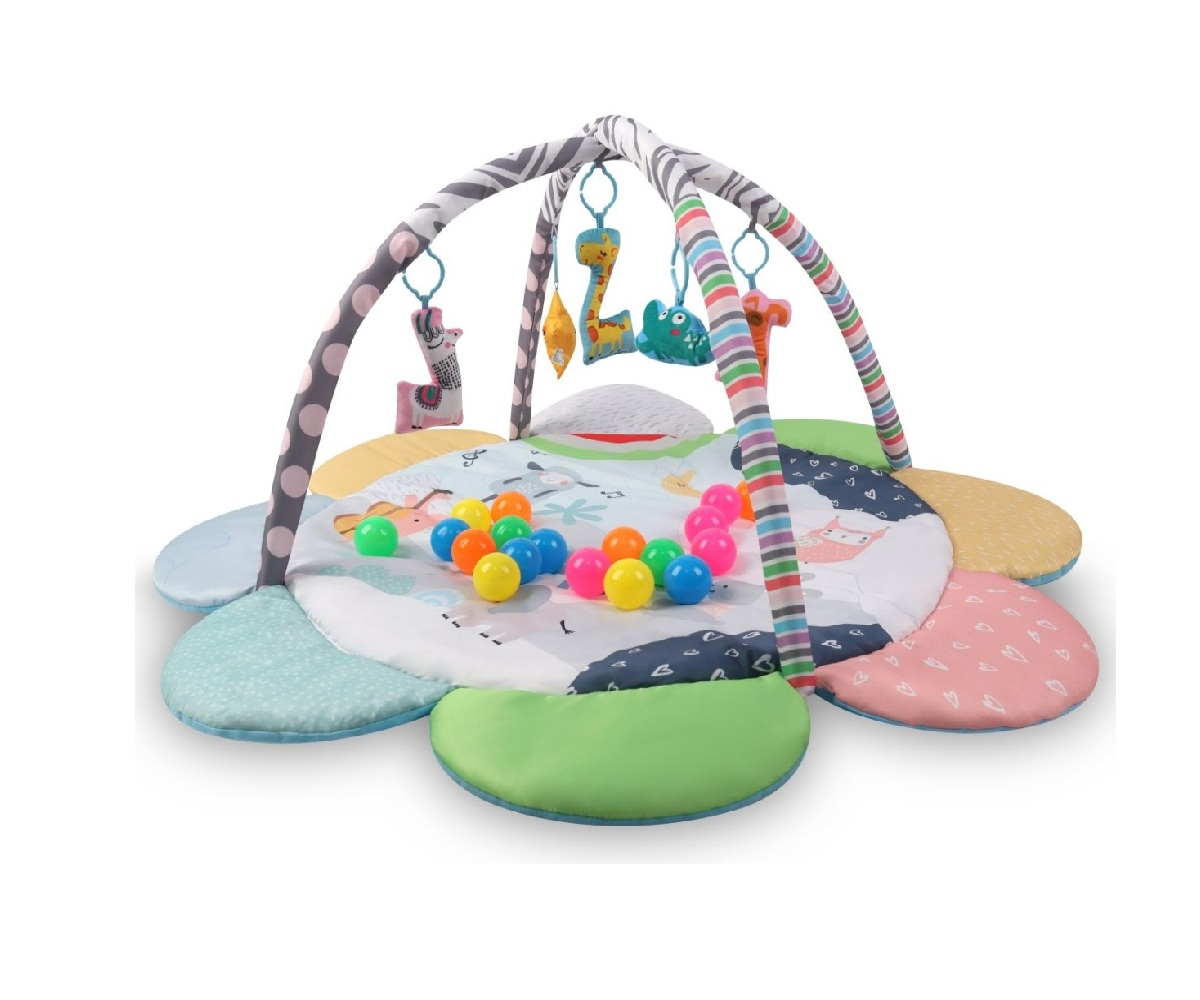 Creata pentru cei mai mici, salteaua educationala TinyMini Floare Zoo este combinatia ideala de bucurie, invatare si siguranta. Forma sa colorata, de floare, incurajeaza micutul sa descopere lumea intr-un mod sigur si prietenos. Are 2 arcade colorate cu jucarii suspendate - 4 animale si o steluta. Setul include 20 de mingi de plastic. Datorita functiei 2in1, va fi potrivita atat ca centru de activitate pentru sugari, cat si ca saltea confortabila de joaca pentru copiii mai mari.