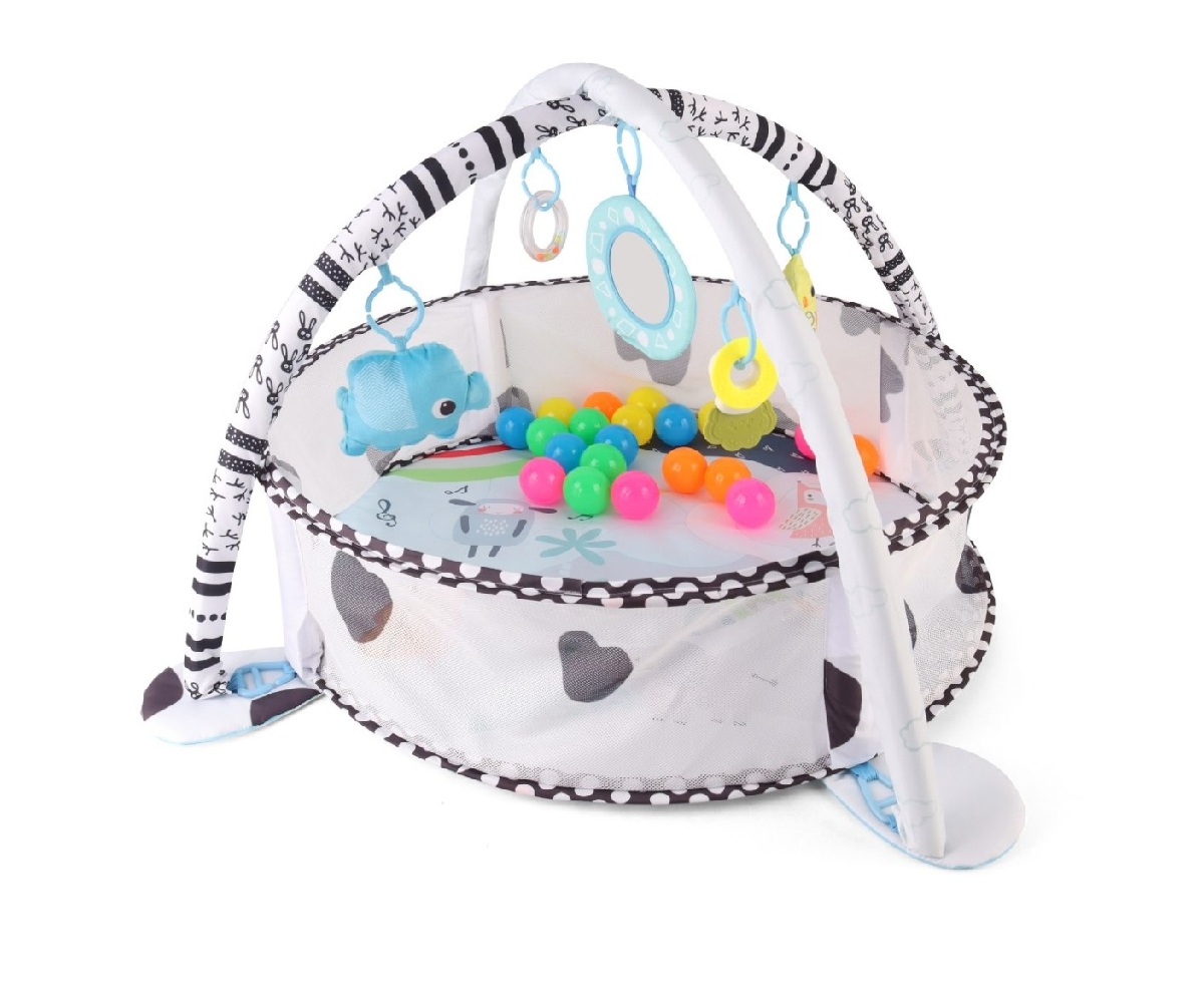 - Saltea - tarc/piscina cu mingi Peretii ridicati din plasa aerisita transforma salteaua intr-o mini-piscina sigura umpluta cu 20 de mingi colorate (incluse in set). Copilul se poate juca inconjurat de jucarii si pereti moi care ofera siguranta si confort.