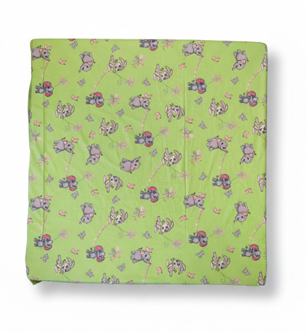 -Bumbac natural imprimat cu culori non-toxice pentru invelisul exterior. Husa este prevazuta cu fermoar si se poate detasa sau inlocui la nevoie.