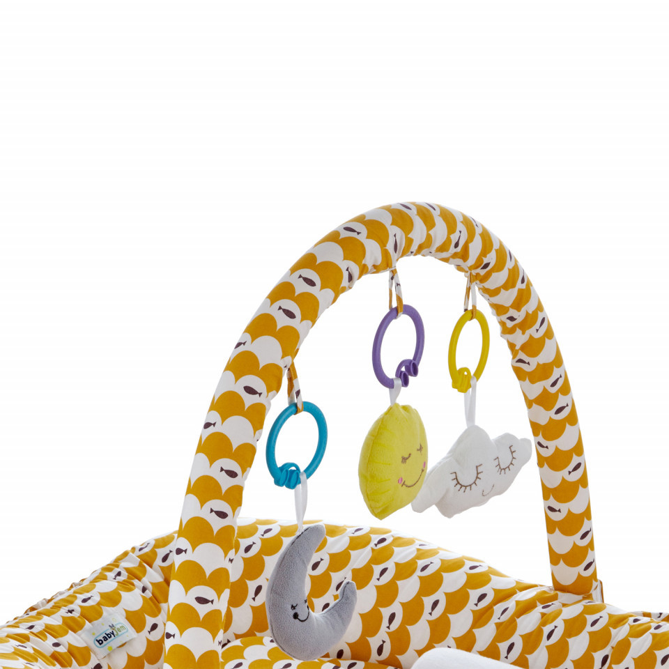 * Astfel, micutul poate fi asezat oriunde, de la patut, la carucior si chiar pe podea sau in tarcul de joaca.