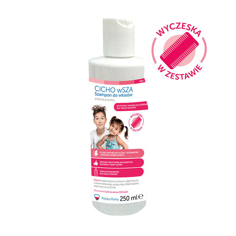 Sampon Chicho wSZA pentru par care ofera o protectie eficienta si naturala pentru parul tau. Caracteristici: - Uleiuri 100% naturale: rozmarin si arbore de ceai - Efect pozitiv asupra starii parului si al scalpului - Protectie eficieta si naturala - Capacitate ideala pentru intreaga familie - Pieptene inclus - Pentru utilizare de zi cu zi - Nu contine sulfati Continut: - Ulei esential de rozmarin - Ulei esential de arbore de ceai - Extract de ulei de miere, indian - Ulei esential Citronella Mod de utilizare: Aplicati samponul pe parul umed si pe scalp, asigurandu-va ca produsul este raspandit pe intreaga suprafata. Spalaiti-va parul masand usor spuma si lasati timp de 3 minute. Apoi clatiti parul cum faceti de obicei. Produsul este recomandat copiilor cu varsta de peste 3 ani . Evitati contactul cu ochii; daca se intampla acest lucru, atunci spalati ochii cu multa apa. A nu se lasa la indemana copiilor.,