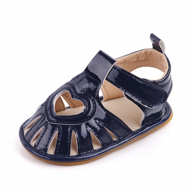 Sandale pentru fetite foarte comode si usoare, inchise in fata, cu o inimioara decupata, se inchid cu bareta cu arici intr-o parte.