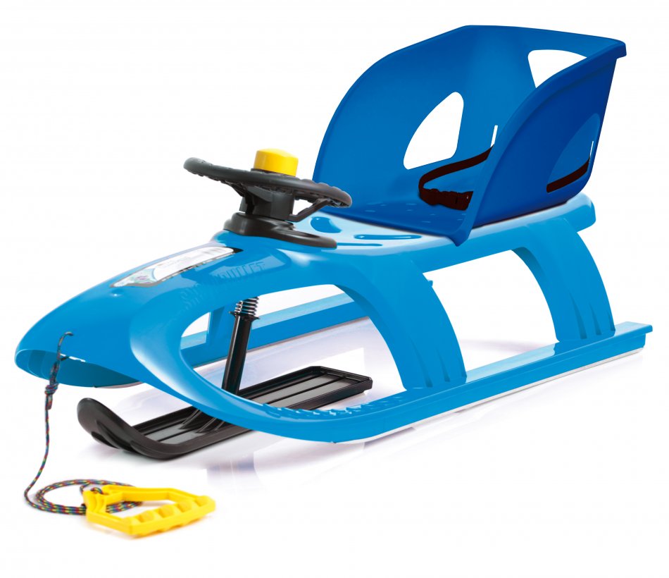 Copii vor avea o calatorie placuta si sigura in scaunul atasat ( acesta poate fi de asemenea foarte usor demontat ) si vor putea de asemenea sa ghidoneze volanul directionand sania in directia dorita.
