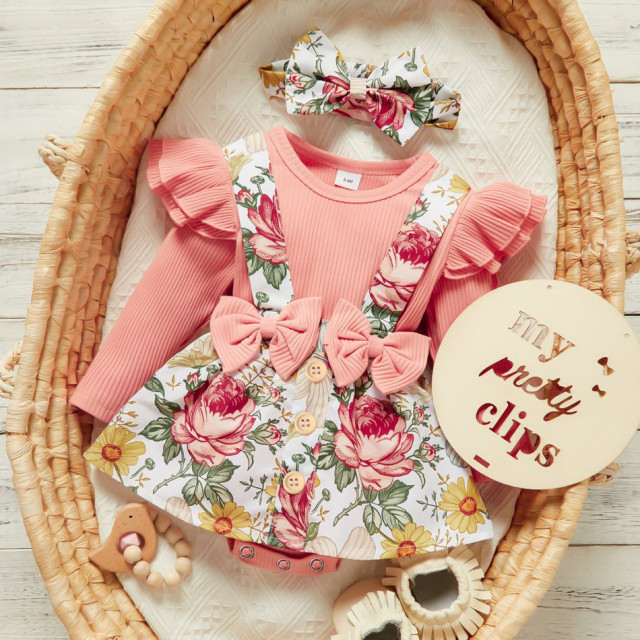 Acest produs Sarafan alb inflorat cu body roz pudra este model MBRZ331-4-cd de 0-3 luni