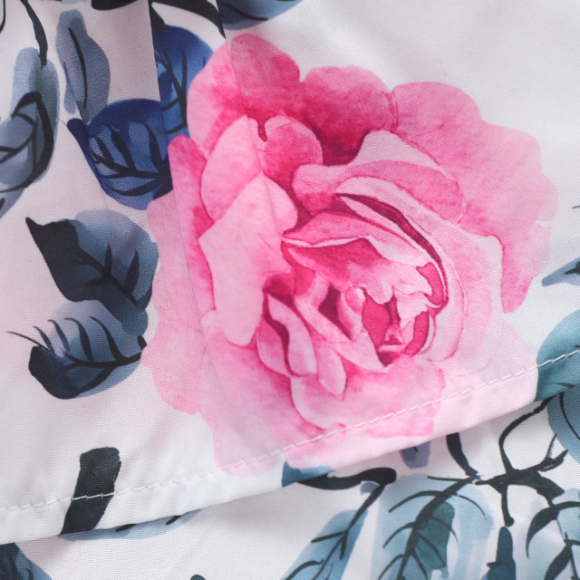 - sarafan alb din material satinat, imprimat cu trandafiri roz;