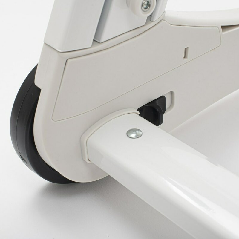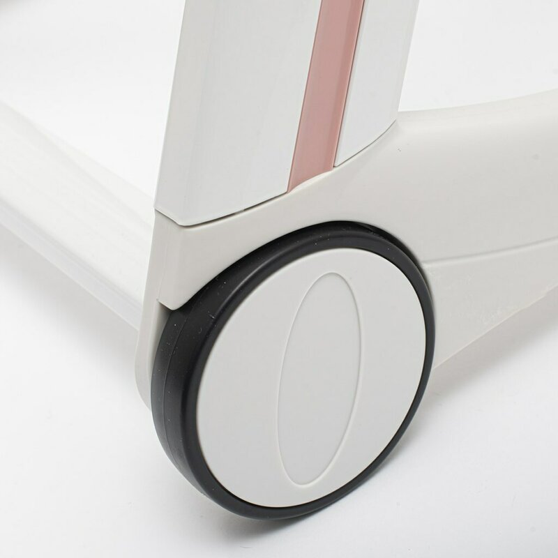 Dotat cu doua roti cu frana si doua picioare din cauciuc pentru stabilitate si mobilitate sigura. -