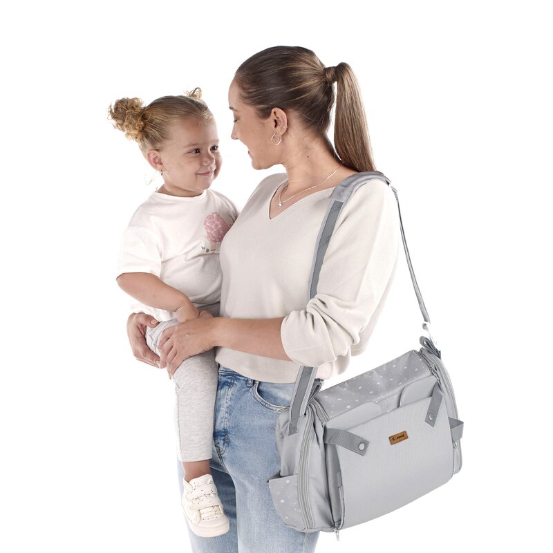 Usor de transportat – geanta cu curea de umar si accesorii de prindere pentru carucior.