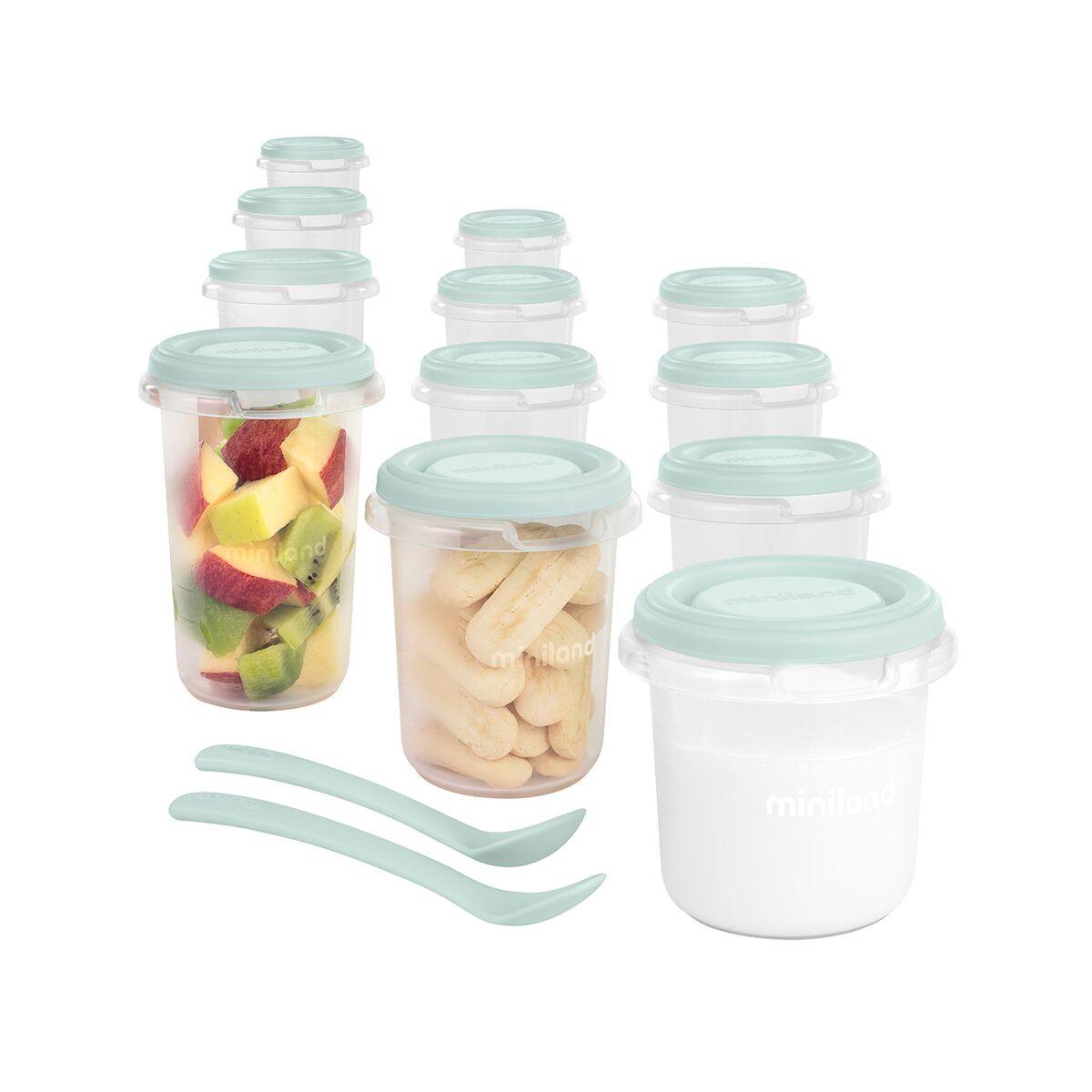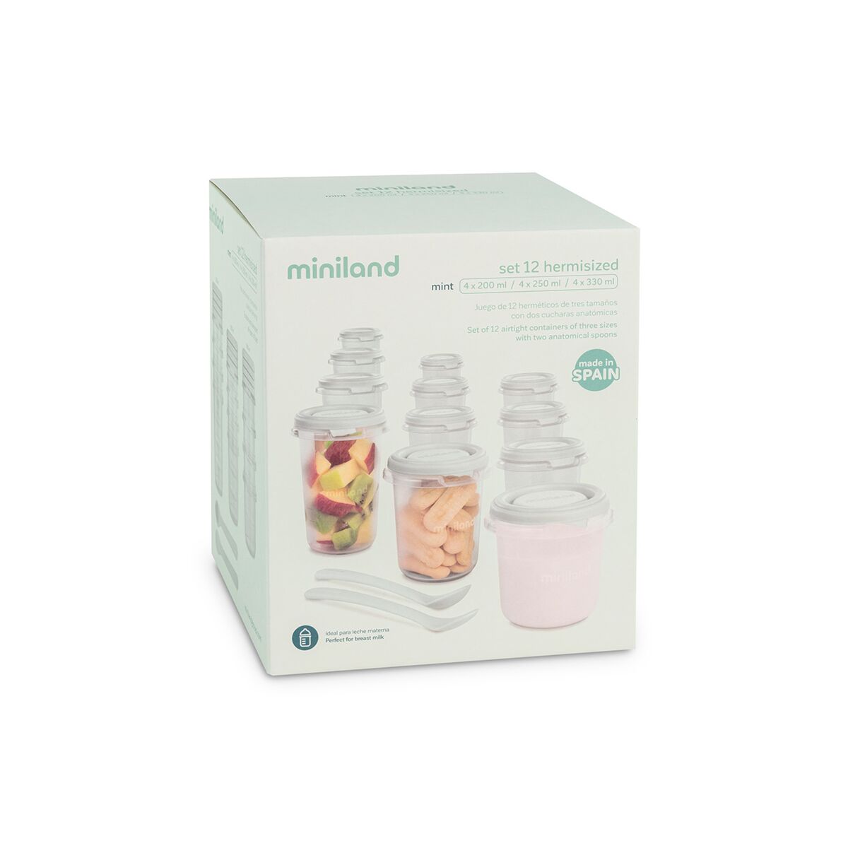 • Set 12 recipiente gradate cu 2 lingurite Miniland Mint, 200, 250 si 330 ml TNA89528