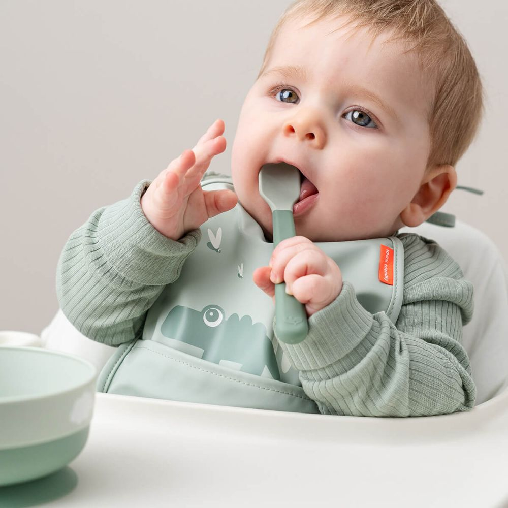 - Format 2-pack: doua bavetici mici (tiny bib) pentru rotatie si disponibilitate permanenta.