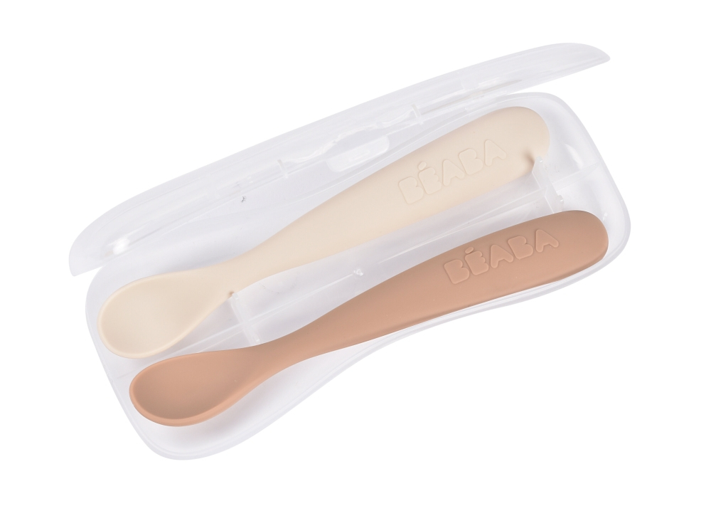 Set 2 lingurite silicon +4 luni Beaba Clay vine, in mod standard pentru aceasta gama, cu o cutie de depozitare care protejeaza linguritele in geanta de iesit la plimbare sau in bagaj. Etuiul pastreaza varfurile curate intre utilizari, astfel incat ai mereu ustensile igienice la indemana atunci cand mergeti la restaurant, la bunici sau in vacanta. Manerul lung este ideal pentru borcanele adanci, caserole si toate tipurile de recipiente pentru piureuri si supe. :contentReference[oaicite:3]{index=3}
