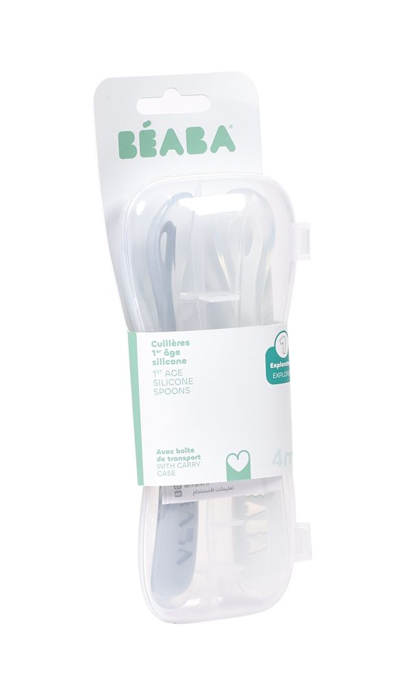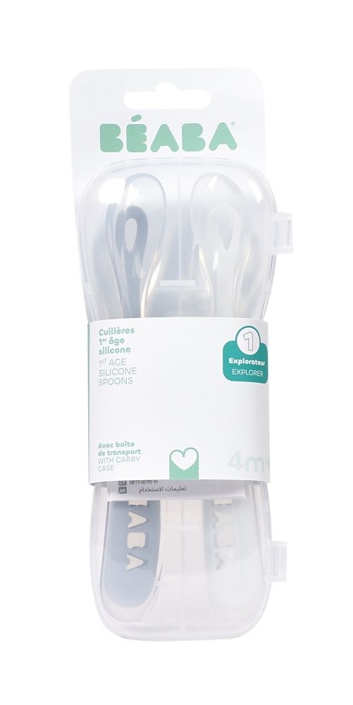 Descriere Set 2 lingurite silicon Beaba +4 luni cu cutie de transport Pebble