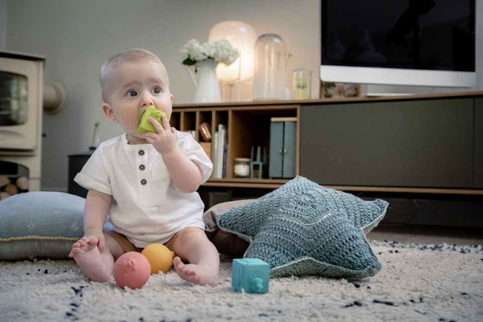 Un set foarte colorat care combina doua jucarii indragite: - 2 mingi din cauciuc natural - 2 cuburi din cauciuc natural. Acest tip de jucarii dezvolta simtul tactil si dexteritatea.
