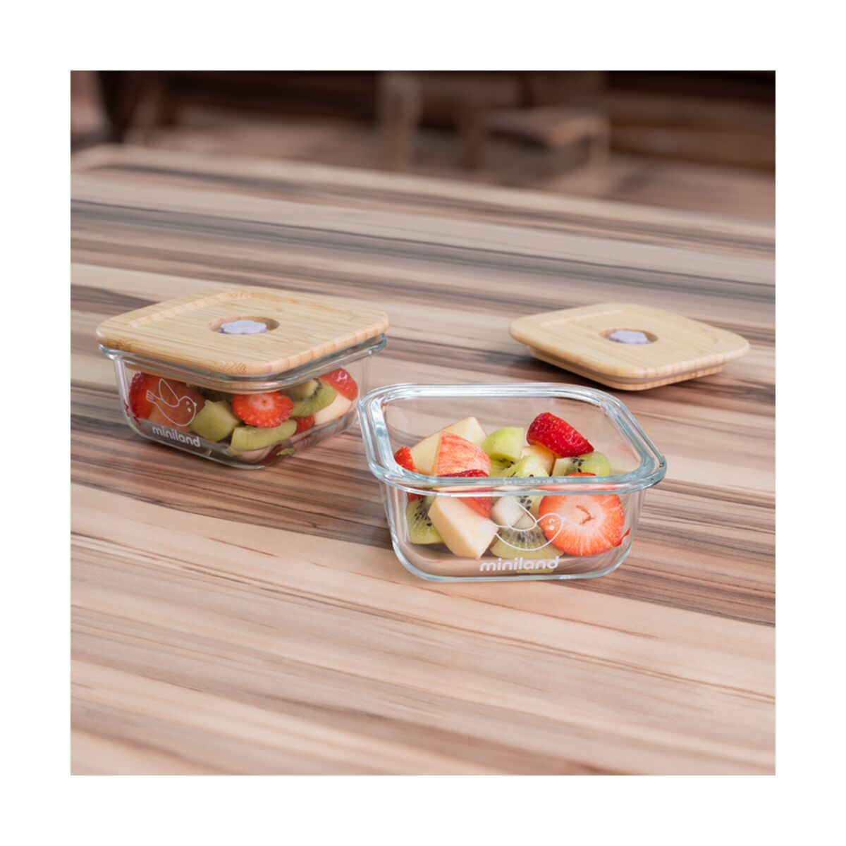 • Set 2 recipiente sticla cu capac din bambus Miniland Chick FSC100% TNA89544