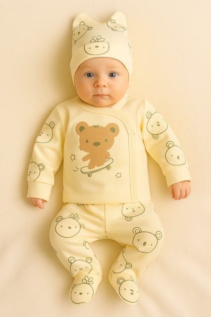 Acest produs Set 3 piese Babycan pentru nou-nascuti, model ursulet 100% bumbac este model BBL62