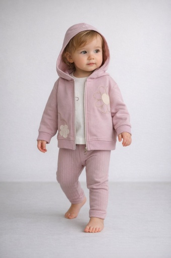 Acest produs Set 3 piese My Bella cu hanorac, bluza si pantaloni, model cu flori brodate pentru fetite este model B 259340-1-32