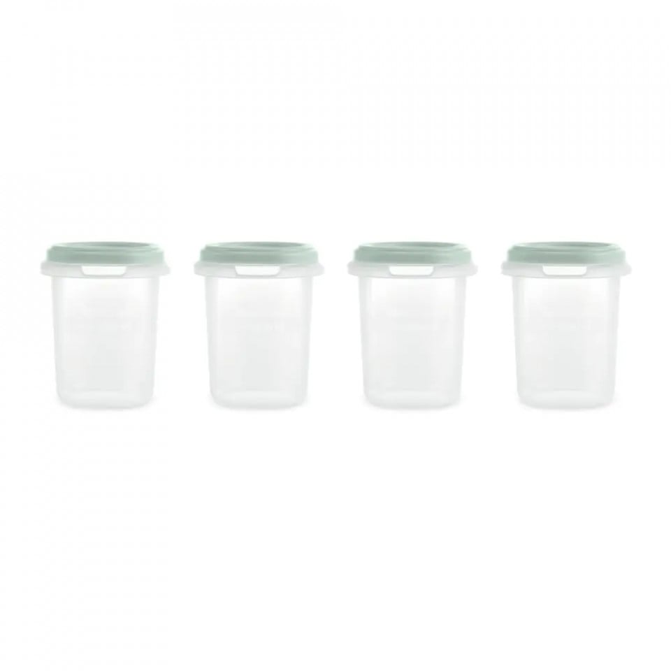Patru recipiente ermetice cu o capacitate de 250 ml și gradare laterală, perfecte pentru congelarea și decongelarea laptelui bebelușului oricând aveți nevoie.   Recomandate în special pentru laptele matern. Cu capacele de culoarea mentei, le veți putea localiza și diferenția întotdeauna de restul. Datorită calității lor excepționale, le puteți decongela în același recipient folosind un încălzitor de biberon, un cuptor cu microunde sau o recipient cu apă calda. Oricare ar fi preferințele bebelușului dumneavoastră!   Permite scrierea cu creionul Capacitate 250 ml  Păstrează proprietățile alimentelor Stivuibile Materiale de înaltă calitate Pot fi transportate Calitate premium