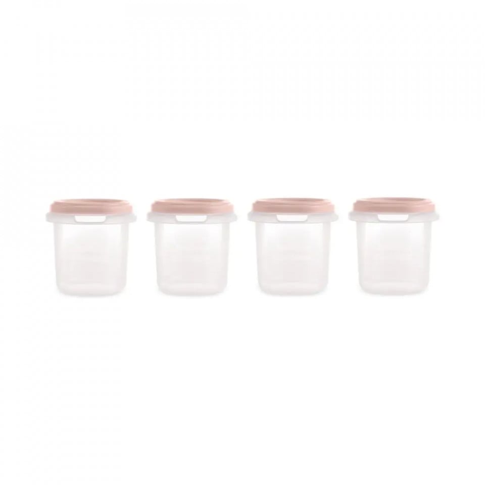 Set de 4 containere de înaltă calitate, gradate, etanșe. Păstrați, încălziți, înghețați și purtați primele mâncăruri ale copilului și tot felul de alimente solide (gustări, prăjituri și deserturi) și lichide (laptele matern, supe, sucuri etc.)   Mâncărurile pentru copii sunt întotdeauna gata, la țară, la plajă sau în parc!   Permite părinților să pregătească mesele copiilor  acasă și să le ia oriunde. Este dimensiunea perfectă pentru a se purta în buzunar, în orice geantă izoterma sau frigider.   Realizat în Spania, cu o calitate excepțională. Containere etanșe la capacitate de 20 cl realizate în Spania cu materiale rezistente.   Părinții pot controla cu exactitate mesele copiilor. Măsurătorile marcate pe recipient permit ca mâncarea bebelușilor să fie adaptată la nevoile lor în orice moment.    Conservarea laptelui matern Foarte potrivit pentru depozitarea laptelui matern, fie pentru refrigerare sau băutură în aceeași zi, fie pentru depozitare mai lungă în congelator.   Pentru toate tipurile de alimente sau lichide solide. Ideal pentru primele macaruri pasate și tot felul de alimente solide, de la aperitive și gustări până la deserturi. Este potrivit pentru alte alimente lichide, cum ar fi supe de carne, supe concentrate sau sucuri naturale.   Produse alimentare congelate și dezghetate cu garanție. Alimentele pentru copii sunt păstrate în congelator pentru a-și menține proprietățile nutritive, aroma și gustul. Cupa gradată este ideală pentru cuptorul cu microunde, permițând alimentelor să se dezghețe într-un moment, cu un confort și o siguranță totală.   Foarte convenabil pentru încălzirea hranei în același container etanș(fara capac), în orice încălzitor de sticlă, cuptor cu microunde sau bain-marie.   Fara BPA   100% fără BPA.   Dimensiuni (inaltime x lungime x latime) 8.4 x 8.5 x 8.4 cm   Capacitate 200 ml
