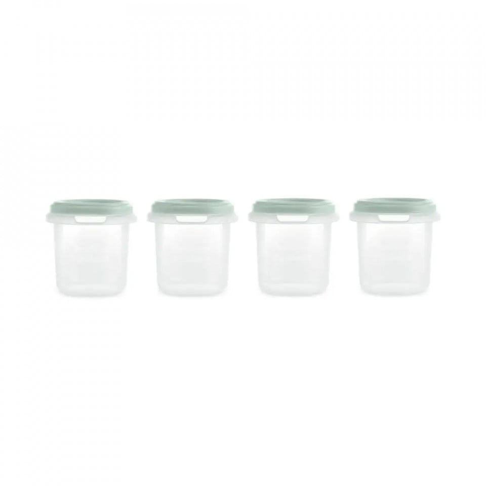 Set de 4 containere de înaltă calitate, gradate, etanșe. Păstrați, încălziți, înghețați și purtați primele mâncăruri ale copilului și tot felul de alimente solide (gustări, prăjituri și deserturi) și lichide (laptele matern, supe, sucuri etc.)   Mâncărurile pentru copii sunt întotdeauna gata, la țară, la plajă sau în parc!   Permite părinților să pregătească mesele copiilor  acasă și să le ia oriunde. Este dimensiunea perfectă pentru a se purta în buzunar, în orice geantă izoterma sau frigider.   Realizat în Spania, cu o calitate excepțională. Containere etanșe la capacitate de 20 cl realizate în Spania cu materiale rezistente.   Părinții pot controla cu exactitate mesele copiilor. Măsurătorile marcate pe recipient permit ca mâncarea bebelușilor să fie adaptată la nevoile lor în orice moment.    Conservarea laptelui matern Foarte potrivit pentru depozitarea laptelui matern, fie pentru refrigerare sau băutură în aceeași zi, fie pentru depozitare mai lungă în congelator.   Pentru toate tipurile de alimente sau lichide solide. Ideal pentru primele macaruri pasate și tot felul de alimente solide, de la aperitive și gustări până la deserturi. Este potrivit pentru alte alimente lichide, cum ar fi supe de carne, supe concentrate sau sucuri naturale.   Produse alimentare congelate și dezghetate cu garanție. Alimentele pentru copii sunt păstrate în congelator pentru a-și menține proprietățile nutritive, aroma și gustul. Cupa gradată este ideală pentru cuptorul cu microunde, permițând alimentelor să se dezghețe într-un moment, cu un confort și o siguranță totală.   Foarte convenabil pentru încălzirea hranei în același container etanș(fara capac), în orice încălzitor de sticlă, cuptor cu microunde sau bain-marie.   Fara BPA   100% fără BPA.   Dimensiuni (inaltime x lungime x latime) 8.4 x 8.5 x 8.4 cm   Capacitate 200 ml