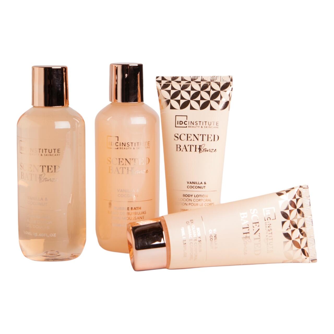 Răsfață-ți simțurile cu setul de baie Scented Bath Bronze Vanilla & Coconut de la IDC Institute, o combinație luxoasă de îngrijire și aromă irezistibilă. Inspirat de eleganța atemporală a bronzului și parfumul cald al vaniliei împletit cu notele exotice de cocos, acest set oferă o experiență completă de relaxare și hidratare.