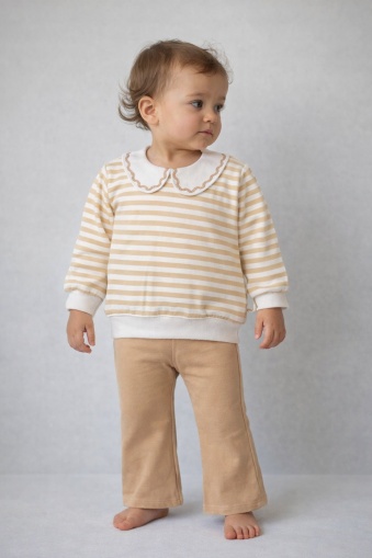 Acest produs Set bebe Bymurat cu bluză în dungi și pantaloni bej comozi este model BK10234-1-29