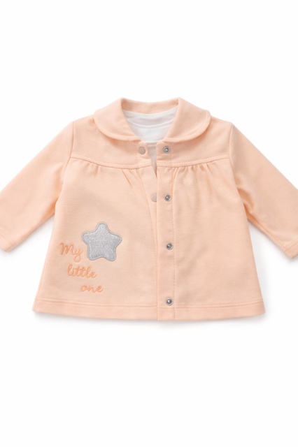 Acest produs Set bebe fete 3 piese piersica jacheta bluza cu imprimeu si pantaloni este model TRAM2202-11