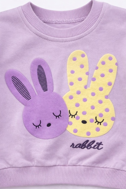 Acest produs Set bebe fetita 2 piese lila cu iepurasi bluza maneca lunga pantaloni bumbac este model TRPB0188