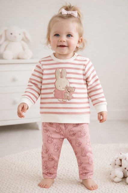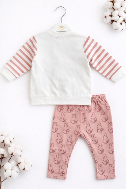 Acest produs Set bebe fetita 2 piese roz cu iepuras bluza maneca lunga pantaloni bumbac este model TRPB0184