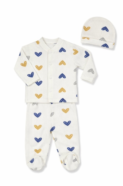 Acest produs Set bebelusi 3 piese, bumbac rib, imprimeu inimioare colorate este model TRPB0009-CP1