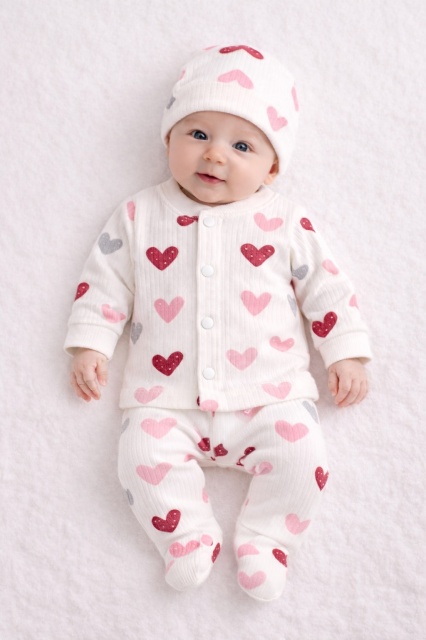 Acest produs Set bebelusi 3 piese, bumbac rib, imprimeu inimioare este model TRPB0010-CP1
