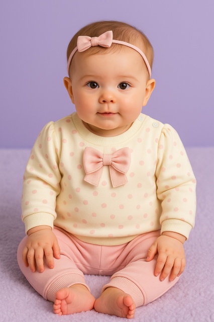 Acest produs Set bebelusi crem cu buline si fundita + pantaloni roz – 2 piese moi si confortabile este model TRMBp1022