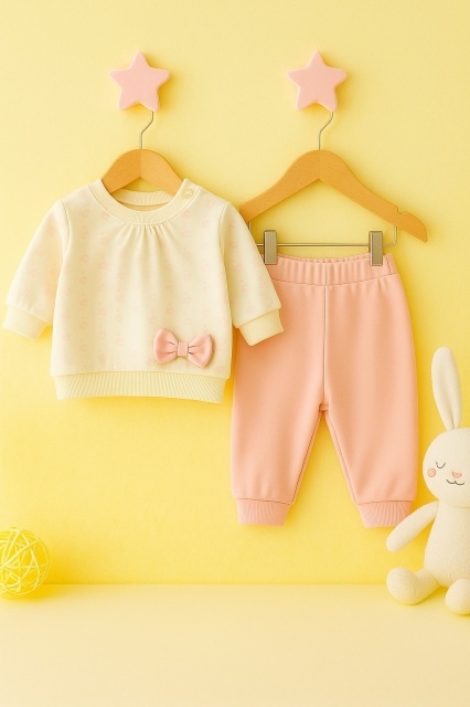 • Set bebelusi cu bluzita ivoire cu fundita si pantaloni roz trmdy1021